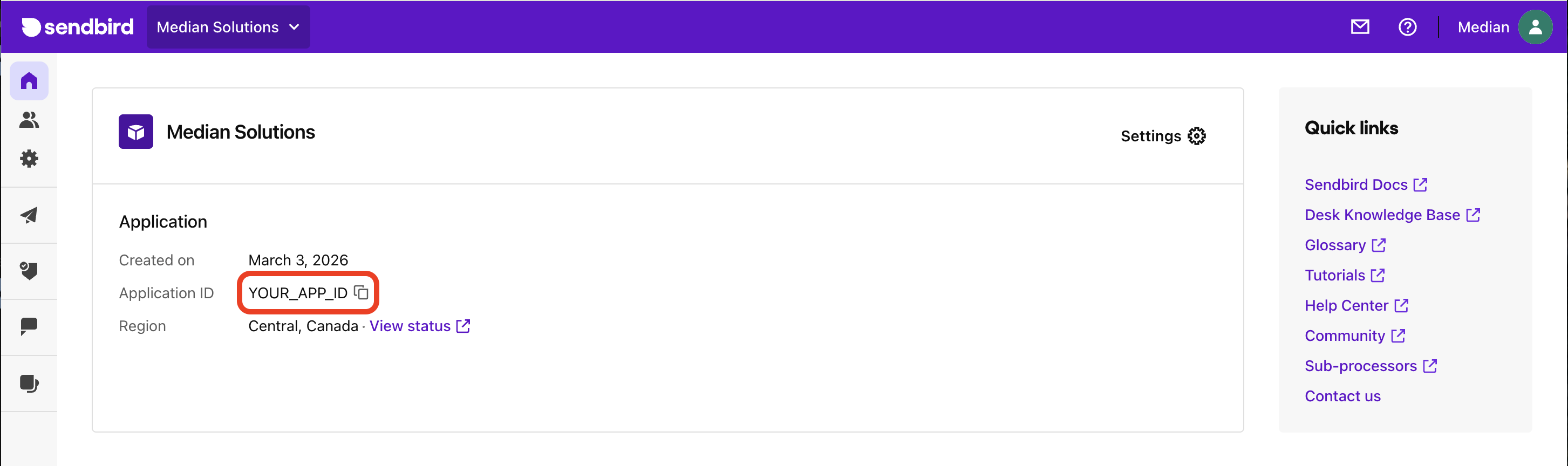 - A Sendbird application and its Application ID (from the Sendbird dashboard)